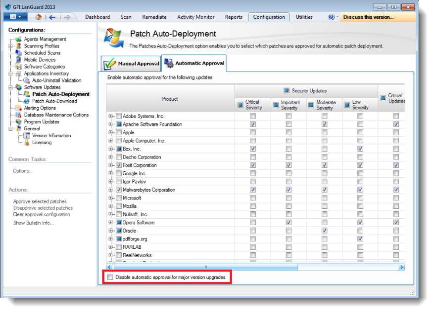 GFI LanGuard is automatically performing major version upgrades of third-party software.