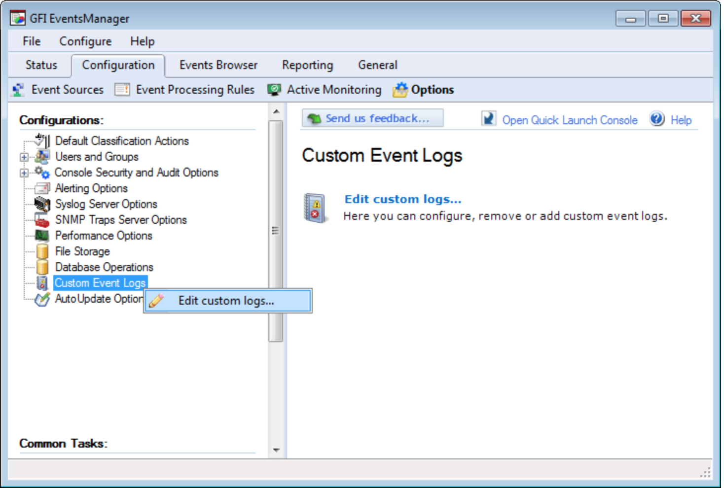 - From Configurations, right-click Custom Event Logs and select Edit custom logs…
