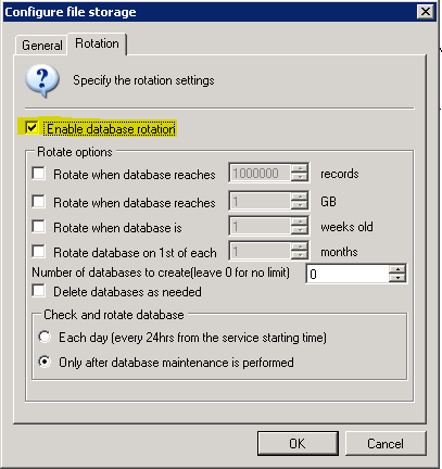 3. Select Enable database rotation, then configure the Rotation Options as desired.